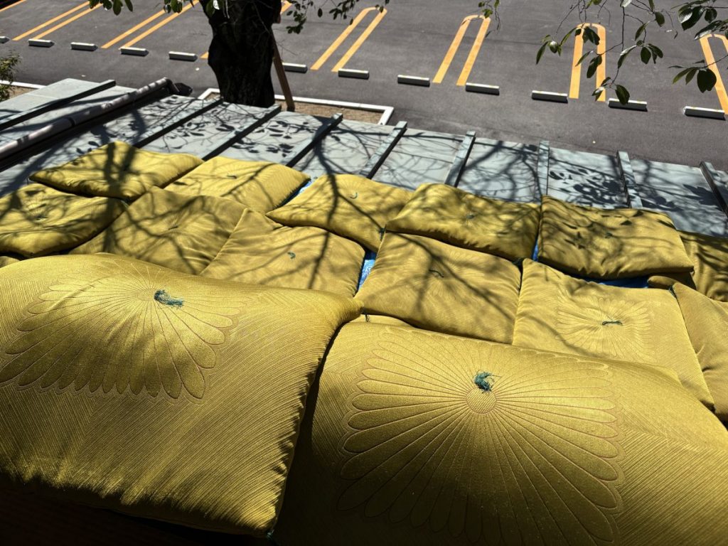 山門工事が始まりましたが、まだ工事の埃が立たないうちに、衣替え作務の一環として、座布団干しをしております。夏の間に湿気を吸った座布団は持ち上げても重く、衛生的にも気になりますので、掛かっていました麻の座布団カバーはクリーニングに出しま... -