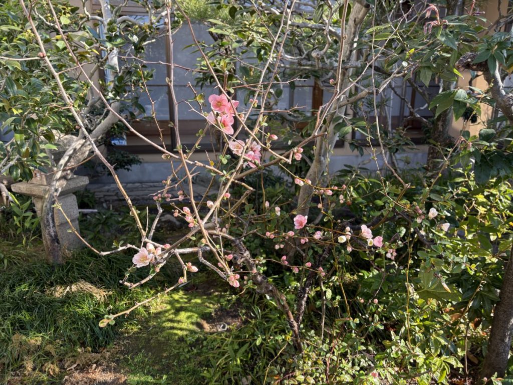 庭のぼけの木も花が満開で、きれいですね、って私は花の名前とかほとんど知らなくて、家内に教えてもらいました。幼稚園の先生だったのにと恥ずかしくなりますが、皮肉なもので、幼稚園をやめてからの方が生活にゆとりのようなものが生まれ、花にも興味が向くようになったような気がいたします。なにしろ年度末から新学期に掛けては、目の回る忙しさでしたからね。