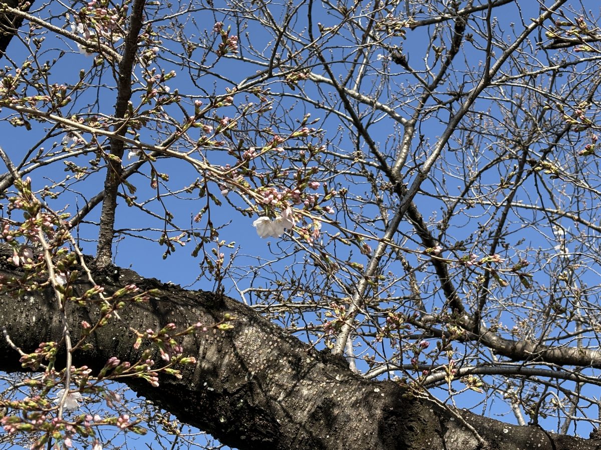 市内各所の桜が咲き始める中、善信寺の桜も(正確にはまだ「ひくま幼稚園の桜」なのですが…)ぼちぼちと蕾をふくらませてまいりました。いつもは必ず一番西の桜から咲き始めるのですが、今年はどういうわけか真ん中の桜が一番に咲き始め、今日(3月27日)現在、「開花」状態で、複数の枝に3〜4輪づつ咲いております。東の桜もぼちぼちと「開花」状態で、後を追っているという感じですね。いつもは一番先に咲き始める西の桜は、今年はなぜかゆっくりペースで、やっと「蕾」状態というところ。最後まで散らないで頑張るぞ、という意気込みでしょうか?